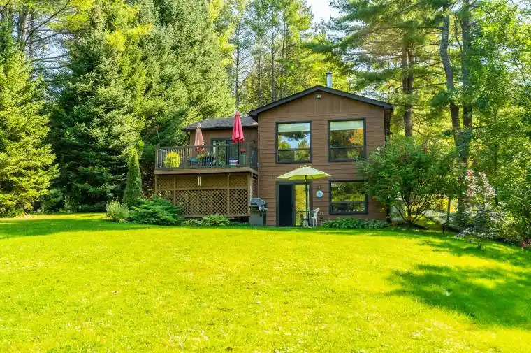 Sitting on the beautiful Gull River, just around the corner from the mouth of Gull Lake, is this year-round home or cottage that has been meticulously loved and maintained. A large front yard offers a great entertainment area. Sit in the gazebo by the water or on the deck and enjoy the quiet surroundings. With a fully finished basement and a separate entrance, your Guests will have their own space to enjoy. The heat pump that also provides air conditioning, along with a woodstove in the living room, a propane stove in the rec room, and even electric baseboards, allow you to choose the heat source that suits your needs. There is also central vacuum, a separate laundry room, backup generator and more. Check out the dry boathouse. Moments from the town of Minden for shopping and amenities. Float or boat into Gull Lake – one of the County’s premiere lakes with excellent boating, fishing and water fun. Boat up river straight to the town dock or to Rotary Park. Located at the South end of the County for quick access from the GTA, and close to local’s favourite – The Rockcliffe Hotel at Moore Falls. A prime location to live or cottage.