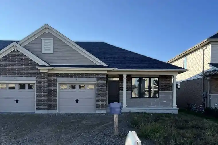 Welcome to 11 Canary Street, a beautifully finished freehold end-unit townhome built by Hayhoe Homes. This thoughtfully designed residence features 2 bedrooms, 2 bathrooms, and a single car garage, making it ideal for first-time buyers or those looking to downsize. Enjoy the ease of main floor living with a spacious primary suite that includes a walk-in closet and private ensuite. The open-concept layout showcases 9′ ceilings, luxury vinyl plank flooring as per plan, and a stylish kitchen with quartz countertops, a pantry, and a central island that flows seamlessly into a bright great room with cathedral ceiling and a patio door leading to the rear deck. A second bedroom, bathroom, and laundry room complete the main level. The unfinished basement offers excellent potential for a future family room, third bedroom, and additional bathroom. Other highlights include a covered front porch, central air conditioning & HRV system, Tarion New Home Warranty, plus numerous upgraded finishes throughout. Located in the desirable Northcrest Estates community, this home is just minutes from shopping, restaurants, parks, trails, and highway access. Taxes to be assessed.