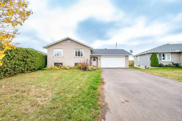 Welcome to this bright and spacious custom-built side split home, offering approximately 1,450 sq. ft. on each level. Perfectly situated in one of Pembroke’s most desirable east-end neighbourhoods, this beautiful property sits on a generously sized lot, set well back from the road for added privacy. Step inside to a large, inviting foyer with ceramic tile flooring. The main level showcases timeless hardwood floors throughout the open-concept living and dining areas, along with a spacious kitchen featuring solid oak cabinetry and a large island – ideal for family gatherings and entertaining. Three bedrooms, including a sizeable primary bedroom, and a large 4-piece bathroom round out the main level. The lower level boasts a massive rec room complete with a cozy natural gas fireplace, abundant storage, a huge fourth bedroom, a full bathroom with a relaxing jacuzzi tub, and a laundry room. The attached double garage provides ample space for two vehicles, lawn equipment, and includes a convenient rear overhead door for easy backyard access. The backyard is surrounded by mature trees, a large deck, and green space to enjoy. This one-of-a-kind home perfectly combines comfort, space, and privacy in an unbeatable location.