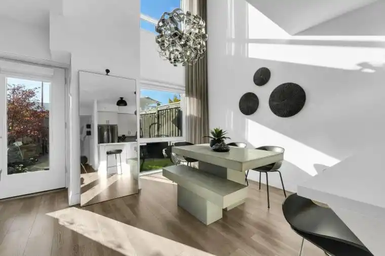 A unique 2 story designer condo townhome featuring 2 bedrooms + den & 3 bathrooms, a private backyard while having full access to all amenities that the prestigious Allegra Condo offers. Experience contemporary living at its best! Some of the features include: open to above ceiling, designer lighting, upgraded kitchen, high-end black stainless steel SMART appliances, including a stove with built-in air fryer, quartz counter tops, under mount sink, modern backsplash, accent stone walls in the entry, living room, and primary bedroom, spa-inspired bathrooms with stone and tile walls, electric fireplaces, Nest thermostats for both floors and much more. The primary bedroom features a stylish open-concept design overlooking the dining area below, adding light and spaciousness to the home. Enjoy a landscaped backyard with your own garden space, BBQ area and private outdoor access (no need to go through the lobby). The amenities in the Allegra Building include: Gym, Theater, Rooftop Deck with BBQ station, Party Room, Meeting Room, Media/ Recreation Room, visitor parking, 24 hour security and much more. Strategically located close to shopping, restaurants, transit, parks, schools, trails and a quick drive to major highways. This is a turnkey dream home!