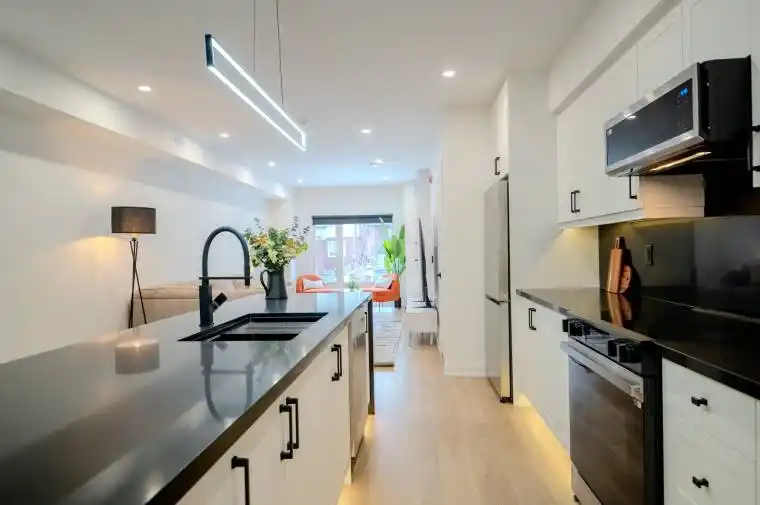 **Brand NEW unit **FREE High-Speed Fibre Internet **9-Foot Ceilings **Maintenance-Free **Be one of the very first to enjoy this stunning, brand-new 750 sq. ft. luxury unit, designed with meticulous attention to detail and offering a lifestyle far beyond the typical apartment rental. Boasting soaring 9-foot ceilings, this spacious and bright unit offers a level of sophistication rarely found on the market. The unit features a separate entrance for privacy and convenience, all brand-new equipment and appliances including a dishwasher and separate laundry within the unit, and individually metered utilities with separate panels for maximum efficiency. The custom-designed interiors are finished with glass railings and a custom shower, complemented by large windows and pot lights throughout, bathing the space in natural and ambient light. A BBQ gas line is available on the private deck, colour-changing LED lighting, with additional features including a security camera system, keyless entry, separate heating and cooling systems, foam insulation, and a fire alarm for year-round comfort and security. Custom roller blinds are already installed for your convenience, and the unit is professionally designed to be completely maintenance-free. As part of a purpose-built building, this unit has been created with luxury and practicality in mind, ensuring every detail caters to modern, upscale living. Don’t miss the opportunity to make this exceptional unit your new home. **EXTRAS** Washer/Dryer, Dishwasher, Fridge, Stove, Microwave/Hood, BBQ Gas Line, Custom Roller Blinds, Keyless Entry, Security Camera System, Fire Alarm System, High-Speed Internet