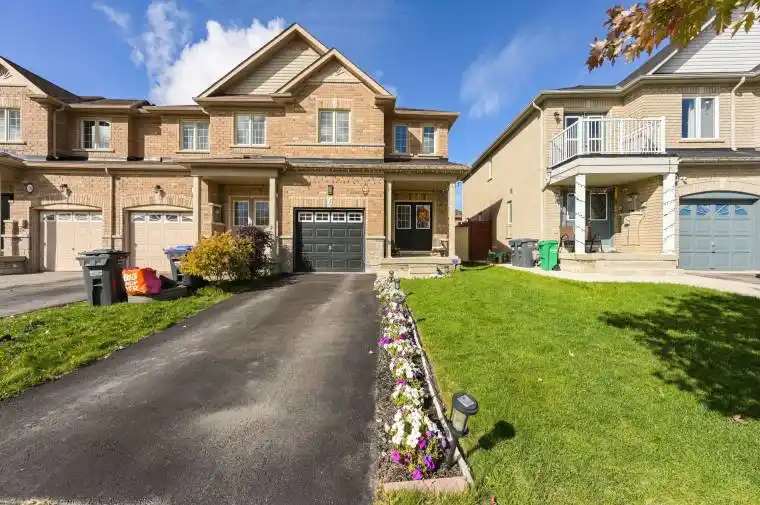 Built in 2015 and offering 1763 sqft (as per MPAC) above ground, plus an additional 836 sqft (as per MPAC) in the basement, this beautiful and very well-kept 3+1 bedroom, 4-washroom end-unit townhouse is a true gem. Featuring a double-door main entrance, an upgraded kitchen with modern countertops, and a large private backyard, this home has no house at the front, ensuring great privacy and an open view. The property boasts a functional layout with plenty of natural light, a private driveway, and no carpet throughout. Conveniently located close to parks, schools, plazas, and Hwy 410 – move-in ready and perfect for families!
