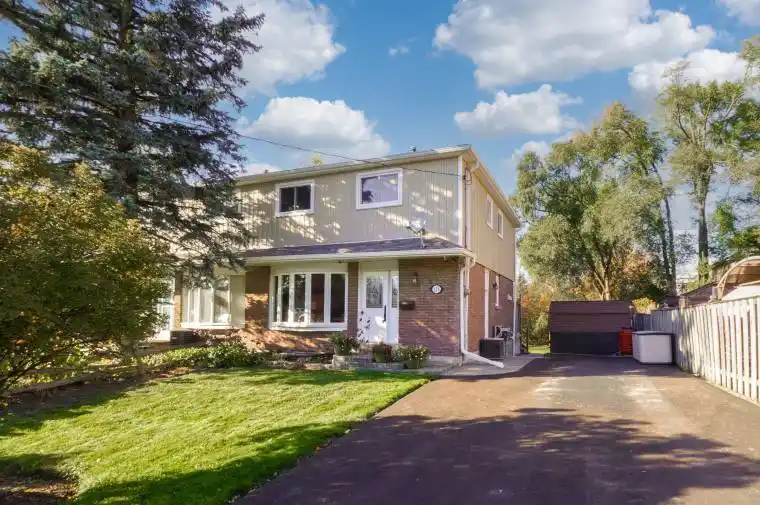 Set in a family-friendly Uxbridge neighbourhood close to parks, schools, and town amenities, this charming 4-bedroom brick and siding home offers comfort, functionality, and modern updates. The main floor features a bright living room with pot lights and a bay window, a dining area with a walkout to a private two-tier deck with a hot tub, and an updated kitchen with white cabinetry and a subway tile backsplash. Upstairs, hardwood floors run throughout four spacious bedrooms with ample closet space. The finished basement adds great versatility with a rec room, laundry area, and workshop. A convenient side door provides access to both the main level and lower level and walks out to the driveway-offering the possibility to create a lower-level suite with a separate entrance if desired. Outside, enjoy a large fenced backyard with plenty of space to relax, play, and entertain, plus an oversized driveway with parking for four vehicles. Additional features include a 2019 gas furnace, central air, electrical updated to copper in 2017, reverse osmosis system, owned hot water tank and water softener, and two garden sheds.