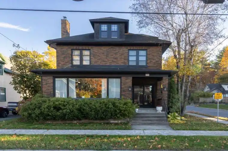 Welcome to 407 King Street West, a timeless 3-bedroom, 2-bathroom home in the heart of downtown Brockville, where character, comfort, and community meet. From the moment you step inside, you can feel the warmth of a home that’s been filled with happy memories. Natural light floods every corner. Morning sun spills through the living and dining rooms, and soft evening light brightens the kitchen and bedrooms. Inside, classic details pair perfectly with modern updates. The spacious living room features a statement fireplace and stunning front windows overlooking the historic streetscape. The formal dining room is ideal for hosting, while the sunroom offers a bright, all-season retreat surrounded by nature and warmth. A second fireplace adds cozy ambiance to the family room, perfect for winter evenings in. Upstairs, you’ll find three comfortable bedrooms, including a primary suite with walkout access to a private balcony, perfect for morning coffee or quiet reflection. Outside is where this home truly shines. A double lot creates a rare downtown oasis. Enjoy a paved patio, in-ground pool, and lush privacy surrounded by mature trees. The perfect space for entertaining, relaxing, or simply soaking up the sun. Located steps from downtown shops, restaurants, and the waterfront, this home offers the perfect blend of historic charm and modern living. Truly one of Brockville’s hidden gems.
