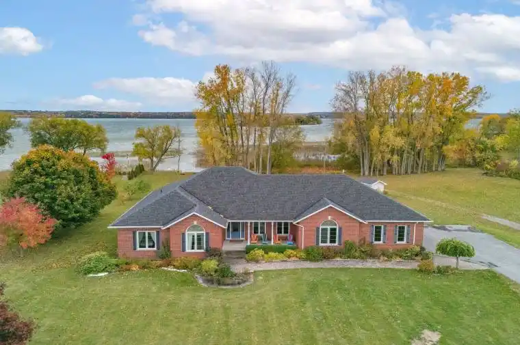 Set on a double lot at the end of a quiet cul-de-sac, this all-brick bungalow offers an exceptional blend of privacy, space, and natural beauty. With over 2.8 acres of level land and more than 300 feet of natural waterfront, this executive property is part of a sought-after community of custom homes-just a short commute to Napanee or Bath, or take the ferry to Picton and explore all that Prince Edward County has to offer. Offering over 4,000 square feet of finished living space, the home features an open-concept main floor with a bright and spacious living, dining, and kitchen area-perfect for entertaining or simply taking in the views. The main level offers three generous bedrooms, including a primary suite with French doors, a massive walk-in closet, and a large ensuite bathroom. The finished lower level extends the living space with a walkout to the waterfront, a third full bathroom, multiple flexible rooms, and in-floor heating throughout. Updated mechanicals include a new furnace, boiler, and well equipment for added comfort and efficiency. An extra-deep double attached garage provides plenty of room for vehicles, storage, or a workshop. With its serene setting,impressive frontage, and beautifully maintained home, this property offers a rare opportunity to enjoy waterfront living in a truly private and picturesque location.