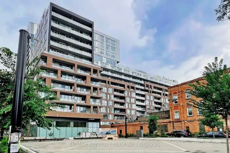 Experience abundant sunlight in this 2-bedroom, 2-bathroom residence, featuring parking and a locker. Setting itself apart, the building boasts merely 3 identical floor plans. Revel in the expansiveness illuminated by natural light flooding through floor-to-ceiling, wall-to-wall windows in every room. The intelligent split bedroom layout optimizes space usage. The European kitchen, complete with integrated appliances, complements the elegance of stone countertops and exquisite finishes, while exposed concrete ceilings add an industrial touch. Hosting is effortless with ample interior space, and the immensely large balcony, equipped with a gas BBQ hookup, spans the width of the condo, providing copious outdoor leisure area. Positioned conveniently, with the Queen Streetcar accessible at your doorstep, reach Downtown in 15 minutes or the DVP in 1 minute.