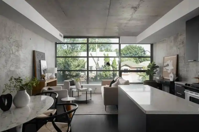 Welcome to The Ninety where modern design meets loft style living. This stylish 1+den suite features exposed concrete walls and ceilings, hardwood floors, stainless steel appliances and a functional open layout. The spacious den can easily serve as a second bedroom or home office, while the living rooms wall-to-wall windows immerse the space in natural light, creating a bright and airy feel. The Ninety is one of Torontos most sought-after boutique loft residences, blending historic character with contemporary finishes and offering amenities like a courtyard terrace, party room, and concierge. Perfectly situated in the vibrant Riverside/Leslieville neighbourhood, you’re just steps from Queen Street East’s cafes, restaurants, shops, parks, and trails, with easy access to transit and major highways. Unit 202 delivers the ideal combination of style, function, and location.