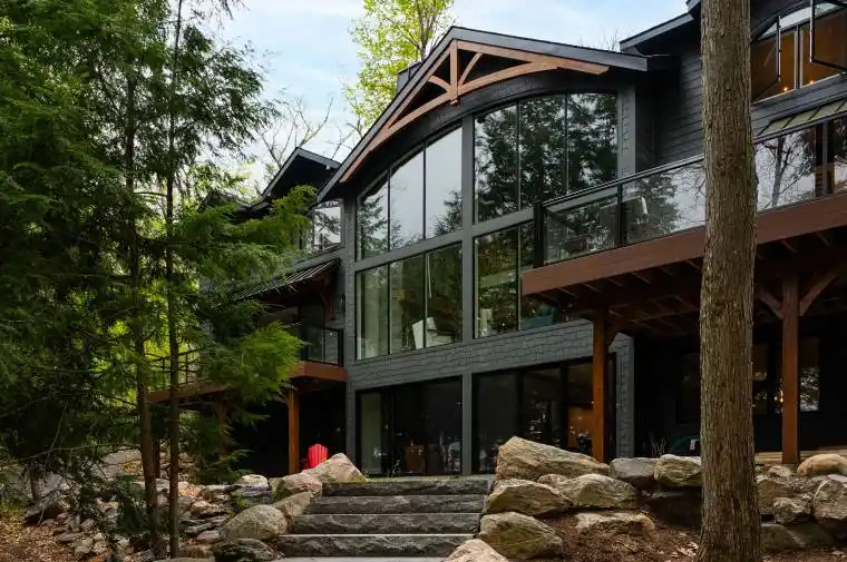 Discover this stunning 7,500 sq.ft luxury build, nestled on 4.8 acres of beautifully landscaped privacy with 306 feet of Lake Muskoka frontage. Designed and masterfully built by Cottage Country Builders with interiors by Hilltop Interiors, this 7+2 bedroom, 7-bathroom estate offers an exceptional blend of craftsmanship and comfort. Enter through a dramatic granite rock cut to your private lakeside retreat. Take in sunsets and long lake views year-round from the matching two-storey boathouse crowned with a signature cupola. A natural sandy walk-in and deep-water access complete the shoreline. Flagstone paths connect the cottage to an inviting fire pit and spa. Inside, a full-height granite fireplace anchors the great room with soaring windows. The kitchen features Sub-Zero and Wolf appliances, a built-in coffee bar, and elegant countertops. The adjacent dining area includes bi-fold lakeside doors and deployable screens. Relax on the expansive deck or in the Muskoka room with a gas fireplace and automatic screens. The main floor primary suite includes a spa-like ensuite and serene lake views. Upstairs, discover another primary, multiple guest suites, and a private study. The lower level lounge features walkouts to the patio and spa, a pool table, quartz wet bar, romantic wine cellar, and opulent home theatre. Whole-home automation and a 20-zone sound system create an ideal environment for entertaining. A 2-car attached garage provides year-round comfort. With permits in place and site prep complete, there’s room to build your dream garage or sports court. This is a rare opportunity to own a new build of this calibre on Lake Muskoka.