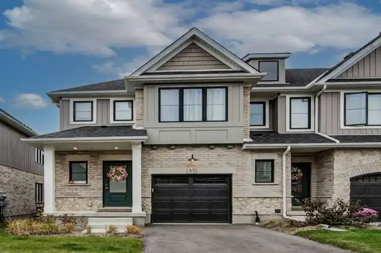 Welcome home to 45 Hedley Lane, Elora. This 2 story home located in the beautiful town of Elora, has parking for two cars, one in the driveway and one in the attached garage. Enter into the front door and you will be wowed by this bright and modern home. There is a 2 piece powder room off the foyer, access to your garage just down the hall and a coat closet. Continuing into the main living area you will find a stunning white eat in kitchen with tile backsplash, quartz counters, stainless steel appliances, large island/breakfast bar and plenty of cupboard space. There is also room for a good sized dining table and access to the basement. The open concept main floor continues with a large living room with tray ceiling, transom windows, and oversized sliders to your deck, which features a privacy wall and stairs to access the lower level of the backyard. The main floor also features stunning light oak luxury vinyl flooring throughout, pot lights, large windows and updated light fixtures. Upstairs on the second floor, in the large hallway there is a perfect flex space for home office or reading area, a big primary bedroom with ensuite and walk in closet, 2 more great sized bedrooms, a beautiful 4 piece main bath and convenient upstairs laundry. This home is perfect for someone looking for a smaller town feel but with all the amenities of the city. The town of Elora has so many great things to offer including local shops, restaurants, Elora Brewing, Elora Distilling Company, The Elora Mill Hotel and Spa, the Elora gorge, walking trails, and so much more. With so many great features and situated in the perfect location, there is nothing for you to do but move in and enjoy!