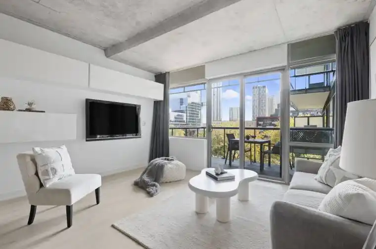 Situated in the heart of Toronto’s most dynamic neighbourhood, this modern 2-bedroom, 2-bathroom condo combines style with everyday convenience. Floor-to-ceiling windows flood the space with natural light, while sleek concrete ceilings, brand new luxury vinyl flooring (2025), and an open-concept layout create an urban-chic vibe. The contemporary kitchen features stainless steel appliances and a Poggenpohl breakfast island – perfect for cooking or entertaining – while a private balcony showcases skyline views and Victoria Memorial Park, for your morning coffee or evening unwind. The primary suite includes a walk-in closet, spa-like ensuite, and in-suite laundry, while the second bedroom easily doubles as a home office. At the Thompson Residences, enjoy exclusive access to the 1 Hotel and premium hotel-style amenities including a rooftop pool, gym, concierge, steam room and more! Just steps from Toronto’s best restaurants, cafés, bars, and nightlife, with sports arenas, the theatre district, The Well, and shopping minutes away. Transit is at your door with quick access to the Gardiner, QEW, and Billy Bishop Airport. Includes Parking and a Locker!