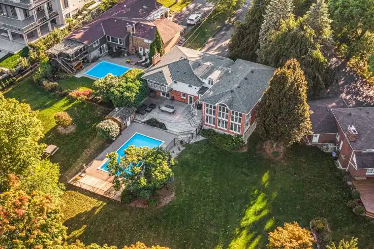Panoramic views on a near half-acre lot in Ancaster Heights. If you’re someone who loves entertaining and having a home that is the ultimate backdrop for unforgettable memories, you’re going to love 887 Montgomery. This home sits perched high over the Dundas Valley & Tiffany Falls conservation with year-round views & privacy. Situated in Ancaster Heights, you can belong to an exclusive community of multi-million dollar estates whose pride of ownership is evident. This 4+1 bedroom, 4,200 sq ft home features a heated inground pool, oversized yard and large 10-car driveway. The enormous primary suite sits on the south wing of the home, offering total freedom to redesign. The two-storey sunroom boasts floor-to-ceiling windows, framing treetop views. Upstairs, four bedrooms are anchored by an oversized primary suite with a gas fireplace, his and hers walk-in closets, and an oversized ensuite. Outside, the private backyard features an in-ground heated pool, two sheds with electricity, mature greenery, and unparalleled views backing onto the edge of the escarpment and Tiffany Falls Conservation Area. Walking distance of the Bruce Trail, shops, cafés, and Ancaster Village restaurants, and minutes by car to Hwy 403/LINC, Ancaster Shopping Centre, Lions Outdoor Pool, and the Ancaster Tennis Club. A rare blend of privacy, convenience, and natural beauty-crafted for everyday living and unforgettable entertaining.