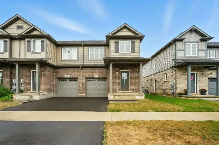 Welcome to 25 Saffron Way, a newly built 2-storey Mountainview Homes residence in the heart of Pelham. This beautiful 3-bedroom, 3-bathroom home offers 1,388 sq ft of thoughtfully designed living space in a family-friendly neighbourhood. Inside, you will find a bright and airy layout with 9-foot ceilings, large windows, and a modern open-concept main floor perfect for entertaining. The stylish kitchen features stainless steel appliances, warm cabinetry, and sleek tile flooring. Upstairs, enjoy spacious bedrooms, including a primary suite with a walk-in closet and ensuite, plus the convenience of second-floor laundry. Additional highlights include a single-car garage, electric car charger rough-in, 200-amp panel, security system, on-demand hot water, A/C, HRV, and all appliances included. The deep, fenced backyard is ideal for outdoor enjoyment or future landscaping. Set on a 21 ft by 108 ft lot, this home offers comfort and convenience, just minutes from Meridian Community Centre, Groceries, local shops, and highway access. This is an exceptional opportunity to lease a stylish home in the highly sought-after Pelham area.