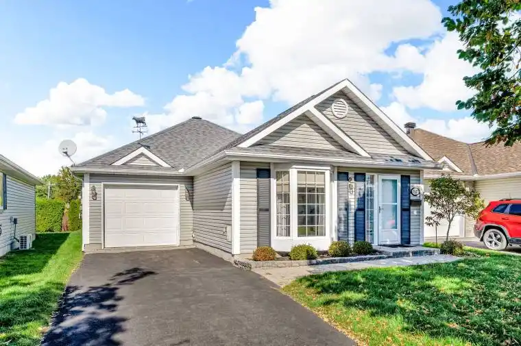 This delightful Markell-built bungalow offers easy living on a quiet court – perfect for downsizing or anyone looking for comfort and convenience. Step inside to a bright, open-concept layout with vaulted ceilings and plenty of natural light from the southern exposure. The spacious living room flows nicely into the functional eat-in kitchen, complete with a backsplash and included appliances. The home features two bedrooms, including a generous primary with great closet space, and a guest bedroom with direct access to the back deck and gazebo – perfect for relaxing outdoors. The 4-piece bathroom includes a tub/shower combo, and the handy laundry/mudroom leads right into the attached single-car garage. Additional highlights include radiant heated flooring, a ductless AC wall unit, a recently replaced heat pump, a newer bay window, roof shingles (2020), interlocking walkway, lovely landscaping, and a garden shed. Close to schools, shopping, and all amenities