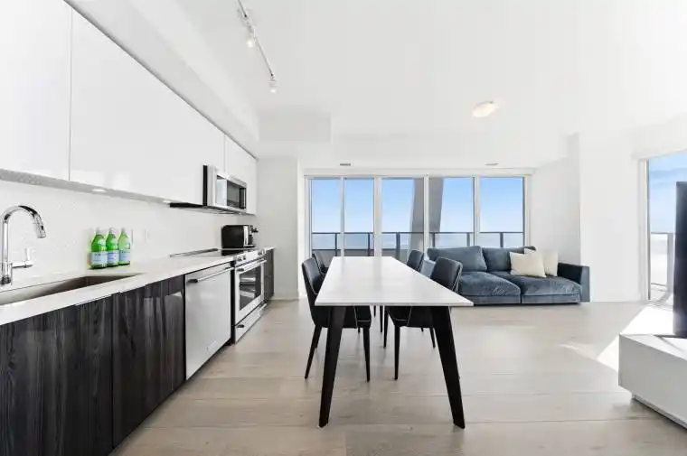 Experience True Waterfront Luxury Living At The Skytower, Eau Du Soleil By Empire Communities. This Stunning 2-Bedroom, 2-Bathroom Corner Suite Offers Unobstructed Panoramic Waterfront & Toronto Skyline Views. Featuring 767 Sq.Ft. Of Open-Concept Living Space Plus A 300 Sq.Ft. Wrap Around Terrace With Walkouts From Every Room. Over $40,000 In Upgrades Including Lutron Motorized Blinds, Upgraded Kitchen, Baths, And Flooring. Modern Design With Spacious Living And Dining Areas Perfect For Entertaining. Located On An Upper Floor With Exclusive Private Access To The Sky Lounge On The 67th Floor. Includes 1 Parking, 1 Locker, 1 Humidor, And 1 Wine Locker. Resort-Style Amenities Include Indoor Pool, Gym, Yoga Studio, Games Room, And More. Prime Humber Bay Shores Location Close To Restaurants, Parks, Trails, Shops, Public Transit, And Highways.