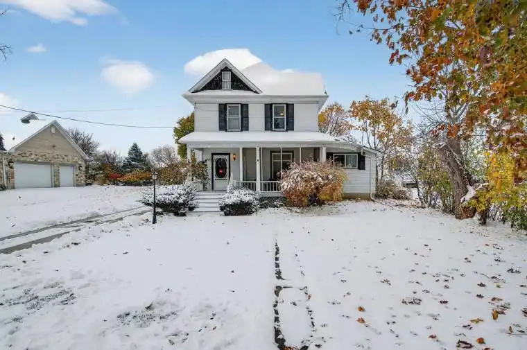 Located in the heart of Wellington with lake views across the street and just a short walk to the beach, cafés, wineries, restaurants and everything that makes Prince Edward County so desirable, this two-storey charming character century home blends charm, comfort and an unbeatable location. Set on a mature, tree-lined lot with a detached two-car garage, it offers the lifestyle many move to PEC for.The screened-in front porch welcomes you in and sets the tone for relaxed living. Inside, the main floor features a large bedroom currently used as an office and a full bathroom-ideal for guests, multi-generational living or those who prefer main-level convenience. The layout includes comfortable living and family spaces, and the mudroom and laundry area have been insulated and finished for year-round use. Flooring has been updated throughout since ownership, bringing warmth and continuity to the home.Upstairs are three additional spacious bedrooms and another full bath with good ceiling height and natural light, offering plenty of room for family, guests or creative use. Recent improvements include a newer hot water system (approximately two years old), updated furnace and updated roof for added peace of mind.The backyard is private, nicely sized and surrounded by mature trees-perfect for gardening, relaxing or entertaining. The detached two-car garage provides storage, parking or workshop space.Homes in this location rarely offer this balance of character, walkability, lake proximity and everyday convenience. This is Wellington living at its best-central, scenic and connected to one of Prince Edward County’s most loved communities.