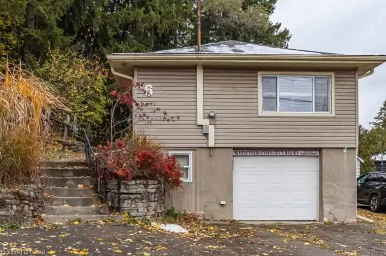 Welcome to “Whispering Pines Cottage” Better Than Condo Living! Enjoy the charm of Dundas living in this fabulous detached bungalow, just a short stroll from the vibrant downtown core. Nestled on a picturesque 33′ x 161′ treed lot, this home offers a peaceful connection to nature right in the heart of town. Step inside to a bright, open-concept Living and Dining area with new broadloom and large windows that fill the space with natural light. The spacious Kitchen features granite counters, a handy peninsula, and built-in appliances-perfect for everyday living and entertaining alike. The 4-piece Bathroom offers a touch of luxury with its granite countertop and ceramic flooring. The Primary Bedroom overlooks the beautifully landscaped backyard, while the second Bedroom-currently used as an office-walks out to a covered deck, ideal for morning coffee or evening relaxation. Recent updates include: roof stripped and reshingled (Oct. 2025), fresh décor, updated plumbing, replaced windows, doors, siding, eaves, and electrical. Whether you’re downsizing or buying your first home, this sweet bungalow is a rare find-quiet, convenient, and move-in ready. Steps to conservation trails, schools, public transit, shopping, and all the charm of downtown Dundas!