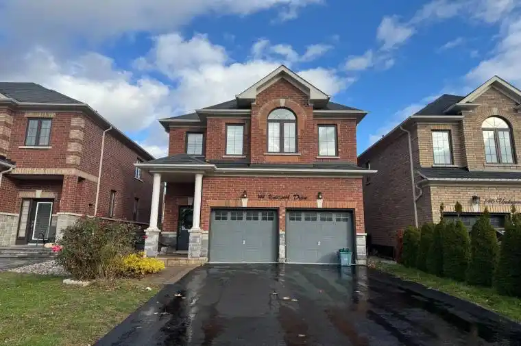 Absolutely spectacular! This custom-built 4-bedroom, 4-bath Brooklin family home showcases stunning upgrades and maintenance-free landscaping. The fully fenced backyard oasis (2017) features lush artificial turf, a relaxing hot tub (2021), a spacious entertainer’s deck(2018), built-in charcoal BBQ, and elegant exterior pot lighting – perfect for gatherings or quiet evenings. Step inside the welcoming foyer leading to an open-concept den with convenient access to the laundry room and garage. The great room offers pot lights, premium laminate flooring, and beautiful views of the backyard. The gourmet kitchen is a showstopper with quartz countertops, stylish backsplash, upgraded stainless-steel appliances, and a large center island with breakfast bar highlighted by modern pendant lighting. Adjacent, the dining area features a sliding glass walk-out to the backyard retreat.Upstairs, you’ll find four spacious bedrooms, including a primary suite with a spa-inspired 4-piece ensuite and walk-in closet, plus a second bedroom also featuring its own 4-piece ensuite and walk-in closet. Extras: Just 6 years new, this home includes numerous upgrades – double-insulated garage roof, updated bathroom vanities, extensive landscaping, water softener system (2018), and much more! Ideally located steps from schools, parks, downtown amenities, and with easy access to Hwy407/412!