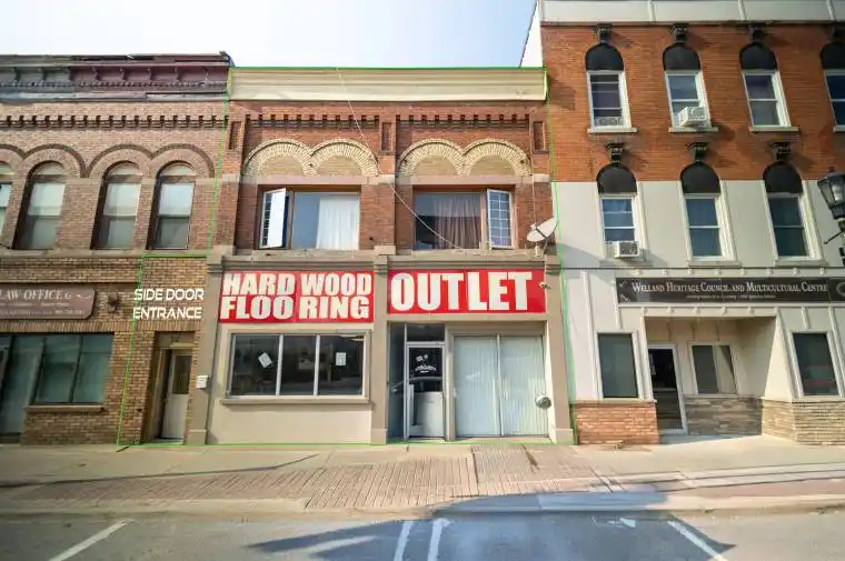 POSITIVE CASH FLOW OPPORTUNITY prime commercial property in the heart of Welland’s downtown core. This property has a high-visibility storefront and self-contained residential apartments and promises a robust income stream with an impressive cap rate. Conveniently located near Niagara College’s Welland campus, public transit, and the scenic boardwalk, it also offers stunning views of the Welland Bridge and Canal. With its high-demand area and solid return potential, a total of 3600 sqft with 2 residential units (900 sqft each) and 1 large Commercial Storefront unit with 3 offices, approximately 1800 sqft. This property is a must-see for savvy investors.