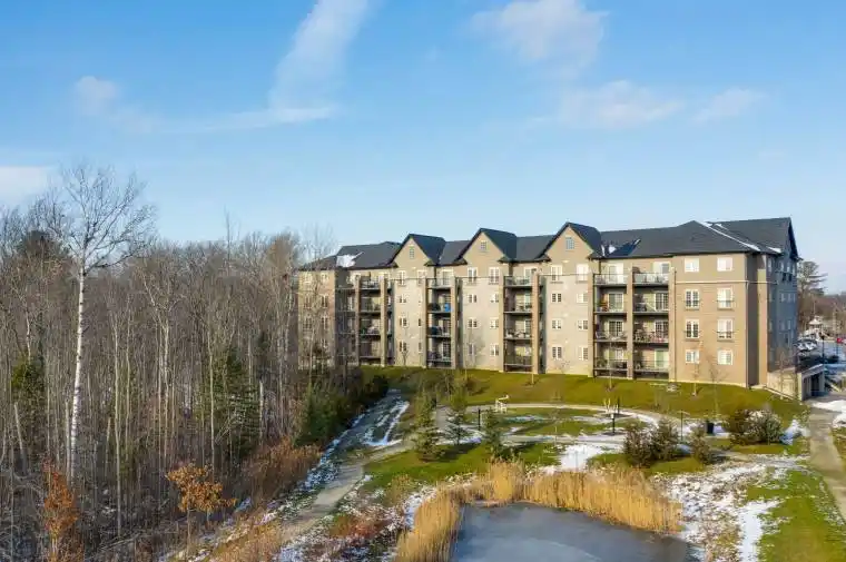 TOP FLOOR CORNER SUITE! Welcome to Upper West Side, an exceptional community nestled in the heart of the Ardagh Bluffs and surrounded by the natural beauty of Bear Creek Eco-Park. Known for its tranquil setting and scenic surroundings, Upper West Side is one of the most picturesque places to call home. Suite 412 is located in the sought-after Empire Building and offers a rare, unobstructed view of the lush eco-park from every window and the expansive balcony. Offering the feel of a bungalow without the upkeep, this spacious 1,464 sq. ft. suite features three generous bedrooms, two full bathrooms, a private foyer, and a bright open-concept living and dining area that flows seamlessly onto the balcony, perfect for entertaining or relaxing outdoors. This suite also comes with one of the most desirable parking spots, extra wide as well as one of the largest storage lockers in the building. Interior finishes have been thoughtfully upgraded, including engineered hardwood flooring, crown moulding, oversized baseboards and window casings, and California shutters. The gourmet kitchen boasts white cabinetry, quartz counters, a ceramic tile backsplash, under-cabinet lighting, rollout pantry drawers, sleek stainless steel appliances (with waterline to the fridge), and upgraded plumbing. Both bathrooms include quartz counters, a glass-tiled shower, and upgraded plumbing fixtures. The primary bedroom includes a large walk-in closet and ensuite bathroom creating a comfortable and private retreat. Barbecues are permitted on the oversized balcony, and being on the top floor means your views align with the treetops, creating a peaceful, elevated retreat. Suite 412 is truly a hidden gem in one of Barrie’s most desirable communities, don’t miss your chance to make it yours.