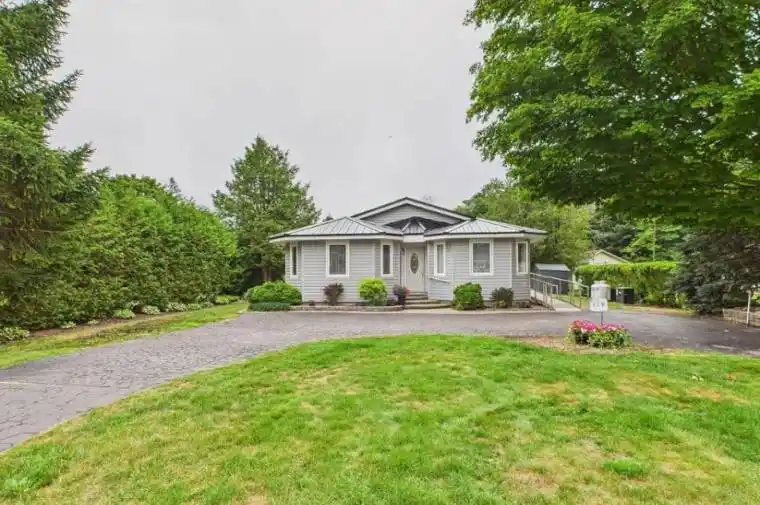 Located in the lakeside community of Point Clark, this almost 1,400 sq’ bungalow has great curb appeal. Set off by the bayed frontage of the house with the metal roof and circular drive welcomes you in to the 2 bedroom, 1 1/2 bath home that has many features for those with mobility issues. A steel ramp provides wheelchair access and there is a wonderful open concept for wheelchair movement inside. A newly installed heat pump provides comfort year round. The main bath is well lit over the large 2 sink corner vanity with added storage and a one-piece easily accessible tub/shower unit with overhead light. Enjoy the serene back yard of this nicely landscaped property with its variety of trees, shrubs and perennials including a perimeter privacy hedge. Outside buildings include a garden shed and a workshop that could convert to a cute little bunkie. Don’t fear power outages as the home also comes equipped with an automatic 10.000 watt generator too!!!