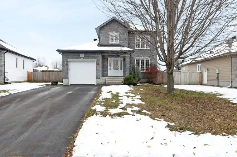 Welcome to this beautiful 3+1 bedroom single detached home in the heart of Limoges, set on one of the largest lots, if not THE largest in the subdivision. Offering exceptional space inside and out, this property is perfect for families, entertainers, and anyone seeking comfort with room to grow. Step inside to an inviting open-concept main floor highlighted by rich hardwood floors, modern finishes, and a bright, functional layout ideal for everyday living. The upper level features three generously sized bedrooms, along with a spacious main bathroom with a separate soaker tub. The fully finished lower level provides even more living space, including high-quality laminate flooring, sleek pot lights, an additional bedroom, and a full 4-piece bathroom. This area is perfect for guests, teens, or extended family. Outside, the property truly stands out. The fully fenced backyard offers privacy and plenty of room for outdoor living. There is also a large 15 by 10 foot shed equipped with a workbench and a garage-style door, ideal for storage, hobbies, or a workshop setup. Located close to parks, schools, and Calypso Water Park, and only a 3 minute drive to Highway 417, this home is perfect for commuters and families alike. A rare opportunity to own a modern, move-in-ready home on an exceptional lot in a growing community. This one should not be missed.