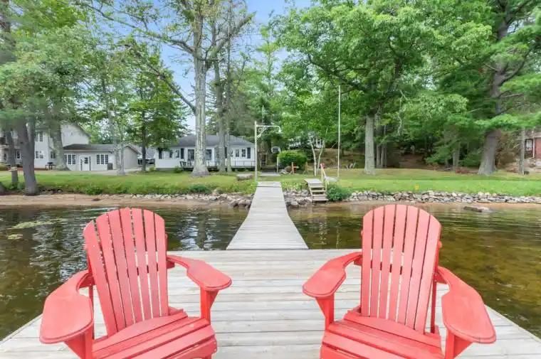 Once-in-a-lifetime opportunity on coveted Jack Lake! This rare offering includes two fully furnished cottages on a beautifully landscaped 1.29-acre property with 127 ft of pristine, owned sandy shoreline-a combination that almost never comes to market. Set in a vibrant, tight-knit community known for its crystal-clear waters, trophy fishing, skating, ice fishing, snowshoeing, and the beloved annual regatta, this is true four-season waterfront living. The 4-season main cottage features 2 bedrooms, a bright open layout, propane fireplace, baseboard heating, expansive deck, hot tub, and breathtaking lake views. Recent upgrades include a 2024 tannin removal system, heated line for the Reverse Osmosis UV water system, and septic pumped in Aug 2024. Enjoy year-round access via a privately maintained road for only $135/year. The seasonal second cottage offers 2 bedrooms, private deck/patio, fireplace, a separate hydro meter, and its own septic system (pumped 2024), making it ideal for guests, in-laws, or lucrative short-term rental income. Both cottages are completely turnkey-furniture, appliances, dishes, linens, kayaks, and a paddle board are all included. Simply unpack and enjoy. Outdoors, relax on the large dock, gather around the fire pit, let kids play on the grassy area, or enjoy the shallow sandy entry perfect for swimming. Ample parking for 6+ vehicles. Conveniently located minutes from the marina, community centre, shops, schools, and all amenities in Apsley. Under 2 hours from the GTA. Live in one, rent the other, rent both, or create the ultimate multi-family retreat. This is Jack Lake waterfront living at its finest-ready for winter enjoyment now and summer adventures ahead.