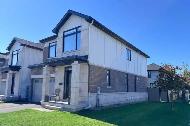 Prepare to be impressed by this extensively upgraded Claridge Cumberland model built in 2021, offering over 3,300 sq.ft. of finished living space, set on a desirable corner lot. With 4 bedrooms, a loft, 3.5 bathrooms, 6 parking spaces and more than $125,000 in premium upgrades, this home is the perfect blend of luxury, comfort and style. The open-concept main floor is filled with natural light and showcases hardwood stairs leading both upstairs and to the basement, upgraded potlights and a two-sided gas fireplace that adds warmth to both the family and dining spaces. The show-stopping kitchen features a two-tone design, large quartz waterfall island, quartz counters throughout, modern cabinetry, wall-mounted microwave-oven combo and premium appliances making it an entertainers dream. On the second floor, retreat to the huge primary suite with a great size walk-in closet and a 5-piece spa-inspired ensuite with double sinks, soaker tub and separate standing shower. Along with the primary, there are three additional great-sized bedrooms, a laundry room, very bright loft and another full bathroom upstairs, providing plenty of space for family and guests. The fully finished basement expands the living space with a full bathroom and a huge recreation area, perfect for a gym, theatre, guest suite or playroom. Step outside to your private, park-like backyard featuring luxurious and unique fencing and lush greenery, providing a serene outdoor retreat. Thoughtful details like custom blinds, exterior potlights on front and side and permanent holiday lighting enhance the curb appeal and convenience. Ideally located in one of the most high-demand areas of Stittsville, close to top schools, transit, shopping, parks and trails, this home is move-in ready and truly one of a kind.