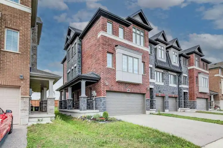 Large end-unit townhome nearly 2,000 sq. ft. with walkout basement and 2-car garage in desirable Doon Valley/Doon South. Bright corner unit backing onto greenspace with parking for 4. Entry level features a versatile bonus room (4th loft/office/playroom) with walkout to backyard plus laundry. Main floor offers an open-concept layout with modern neutral finishes, a spacious living/dining area, and a contemporary kitchen with stainless steel appliances, eat-in island, deep pantry, and walkout to deck. Upper level includes a loft space, 3 generous bedrooms, and a primary suite with walk-in closet and 3-pc ensuite. Large walkout basement ready for your finishing touches. Close to Hwy 401, Conestoga College, parks, schools, trails, and all amenities. Photos from previous listing.