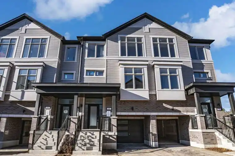 A STANDOUT NEW-BUILD WITH HIGH-END FINISHES, A STATEMENT KITCHEN & ELEVATED UPGRADES! Set within the Townes at Deer Springs by Honeyfield Communities, this standout new build commands attention with its brick-and-vinyl exterior, matte black keypad entry, and fenced backyard designed for relaxed evenings and effortless entertaining. Natural light pours through an open layout enhanced by 9 ft smooth ceilings, modern trim, sleek railings, oak-finish stairs, and upgraded water-resistant laminate and tile flooring that create a crisp, contemporary atmosphere throughout. The statement kitchen anchors the space with tall uppers, designer two-toned cabinetry with a contrasting island, Caesarstone quartz countertops, an undermount sink, full-height tiled backsplash in a brick pattern, under-cabinet valance lighting, pot lights, and a generous island that naturally draws people together, supported by a 6-piece appliance package tailored for seamless hosting. Upstairs, the primary retreat offers a calming escape with a walk-in closet and a beautifully finished 4-piece ensuite featuring a frameless glass shower and a Caesarstone quartz vanity, while two additional bedrooms share an upgraded 4-piece bathroom with a frameless sliding tub door and refined tilework. The lower level adds flexibility with a French-door office and walkout to the deck, paired with a main-floor powder room and smart laundry setup that keeps daily life running smoothly. Two balconies with glass railings invite slow mornings and sun-soaked evenings, while the oversized garage and driveway add everyday ease. A low monthly fee covers key maintenance, leaving more time to enjoy nearby parks, schools, dining, golf, and the community centre that keeps the lifestyle feeling connected and vibrant.