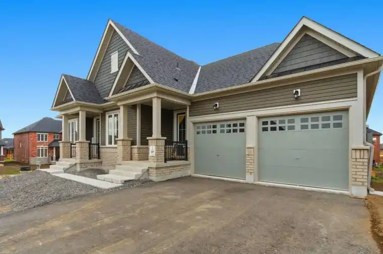 Welcome to Riverbend Estates – Where Luxury Meets Nature. Discover this stunning, sun-filled bungalow perfectly situated on a premium corner lot in one of Peterborough’s most desirable new communities. Offering elegance, comfort, and exceptional main-floor living, this home was designed for modern families and those who appreciate thoughtful, open-concept design. Step inside to find soaring ceilings, expansive windows, and refined craftsmanship throughout. The spacious layout features a grand family room with custom waffle ceilings and a striking gas fireplace – the heart of the home where memories are made. The gourmet eat-in kitchen impresses with granite countertops, a large centre island, upgraded cabinetry, and stainless-steel appliances, opening seamlessly to the backyard for summer gatherings and sunset dinners. A formal dining room offers the perfect setting for hosting family dinners and special occasions, while a private front office provides a quiet retreat for remote work. Enjoy complete main-floor living with a private primary suite tucked away on one side of the home, featuring a spa-inspired ensuite with a glass shower, soaker tub, and double vanity. On the opposite side, you’ll find two additional bedrooms connected by a stylish Jack-and-Jill bathroom-the perfect setup for family or guests. The huge walk-out basement offers endless potential-design your dream recreation space, gym, theatre, or in-law suite. A 3-car tandem garage provides ample space for vehicles, storage, or even a workshop. Set on a large corner lot, this property provides both privacy and curb appeal, surrounded by the beauty of Riverbend’s natural landscape. Just steps from the Otonabee River, residents enjoy access to a private community boat launch & scenic walking trails. Located only 5 minutes to Hwy 115 and 7 minutes to downtown Peterborough, this home offers the ideal combination of peaceful living and everyday convenience.