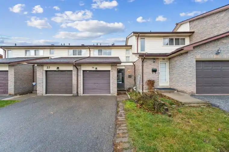 A new home for the new year! This 3+1 bedroom, 3-washroom condo townhome with a bonus main-floor office sits on a desirable ravine lot with no neighbours behind, offering views and access to the Etobicoke Creek trail system. Exterior maintenance, water and Rogers cable are included in the monthly fees. The main floor features a ceramic-tiled entry and hall with a convenient powder room, a versatile office with direct access to the garage, and an open-concept living/dining room with hardwood floors and a walk-out balcony overlooking the greenbelt. The kitchen includes ceramic flooring, backsplash, stainless steel appliances (new fridge Nov 2025), a pantry and a cozy corner breakfast nook. The upper level offers a full bathroom and three bedrooms, all with parquet flooring; two overlook the ravine and parkland. The walk-out basement includes a cozy rec room with ceramic flooring, a wet-bar/kitchenette with sink and counter, a bedroom overlooking the fenced yard with Berber carpet (Nov 2025), a 3-piece washroom with stand-up shower, and a combined utility/laundry room with washer, dryer and laundry tub. The well-managed complex provides a recreation centre and plenty of visitor parking. All berber broadloom on the stairs, in the 4th bedroom and in the main-floor office was replaced in Nov 2025. A standout feature: the original single garage was partially finished by a previous owner to create a practical main-floor office with berber carpet (replaced Nov 2025). A remaining portion functions as enclosed storage, and the layout allows buyers to restore to a full garage if desired. This home offers flexible living space, a private ravine setting and the convenience of condo living; all in a quiet, well-maintained community close to transit, shopping, parks and everyday amenities. Ideal for families or a rental property for investors.