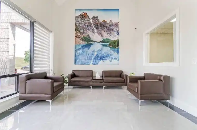 Beautiful contemporary-designed main-floor office space for lease. This is a private office offered within a shared professional workspace, ideal for accountants, lawyers, paralegals, insurance brokers, mortgage brokers, financial advisors, immigration consultants, real estate brokers, logistics companies, and other service-based professionals. The impressive lobby features 20-foot ceilings and a comfortable waiting area, creating a strong first impression for clients and visitors. Tenants have access to two furnished boardrooms, two kitchenettes, three washrooms including one accessible washroom, and shared common areas. Located in the Steeles and Torbram area of Brampton, this office space is situated in a highly accessible and well-connected business hub with excellent access to highways, and public transportation. The plaza provides plenty of parking for tenants and visitors, and the surrounding area offers a variety of restaurants and cafés for added convenience.
