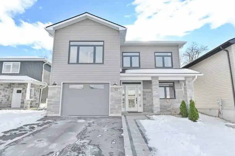 Welcome to 53 Meagan Lane-an executive 2023 residence that elevates the standard of a modern new build. This turnkey luxury home is perfectly located with quick access to the 401, Belleville, and CFB Trenton. Within 2 km, enjoy downtown Frankford, the Frankford Tourist Park and Beach, the Trent River, golf, trails, playgrounds, shops, restaurants, and essential amenities-everything that makes this community so loved. Inside, bright sophistication defines the space with 9-foot ceilings, a stunning vaulted living room, and a seamless open-concept layout. The gourmet kitchen showcases an 8-foot quartz island and a full wall of glass-front cabinetry, while the living area offers warmth with a beautiful shiplap-framed fireplace. Main-floor laundry and a future-ready 200-amp service add convenience. The primary suite is a peaceful retreat with a walk-in closet and a spa-inspired ensuite featuring a custom glass shower and premium finishes. An 8-foot patio door leads to a private outdoor oasis with a deck, lower patio, perennial gardens, and a professionally landscaped, fully fenced yard with no rear neighbours. Enjoy an all-season gazebo, mature greenery, and a built-in natural gas barbecue hook-up-perfect for year-round entertaining. An elegant interlocking walkway enhances the home’s curb appeal. Experience the best of Quinte West living with kayaking and fishing on the Trent River, nature trails, conservation areas, and family time at Frankford’s sandy beach-all just minutes away. Better than new, this home offers exceptional craftsmanship, thoughtful design, and an elevated lifestyle.
