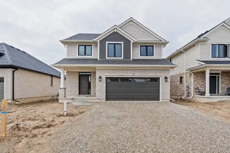 Move-in ready 4-bedroom, 2.5-bath home by Hayhoe Homes in Aylmer’s Willow Run community. Featuring an open-concept main floor with 9′ ceilings, hardwood and ceramic tile flooring, and a designer kitchen with quartz countertops, island, tile backsplash, and pantry flowing seamlessly into the great room with a cathedral ceiling and a bright dining area with patio door leading to the rear deck, complete with a gas BBQ hookup. Upstairs, the spacious primary suite features a walk-in closet and ensuite with shower and separate soaker tub, plus three additional bedrooms and a full bath. The unfinished basement provides development potential for a future family room, 5th bedroom, and bathroom. Additional highlights include a covered front porch, open to above foyer, convenient main floor laundry with garage access, Tarion New Home Warranty, plus many more upgraded finishes throughout. Taxes to be assessed.