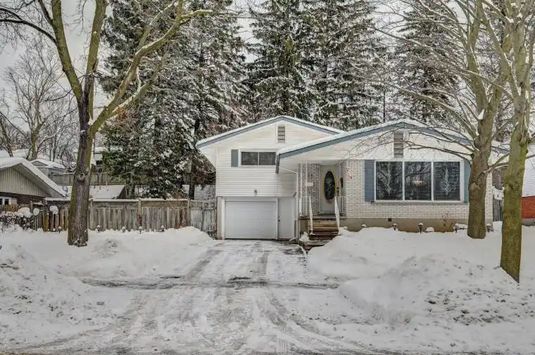 Located in desirable Forest Hill area of Kitchener on an 80 foot wide lot on a tree lined street. Lovingly cared for home with same owner for 48 years. 3 bedrooms plus a main floor den. Deck off main floor den. Primary bedroom with two closets. Kitchen and bathroom both updated over the years. Eat-in kitchen. Furnace and A/C replaced June 2024. Windows replaced over the years (except 1 window in basement). Windows in kitchen, dining room, and front windows are oversized. Plenty of natural light. Ceramic tiled flooring in foyer, kitchen, hallway, and bathroom. Hardwood floors in living/dining areas, bedrooms, and den. Carpet free home except for in a storage room in basement. Plenty of storage space in home. Rec room. Oversized single garage with entry to inside of house and entry from front exterior. Covered front porch. Armour stone retaining wall at back. Ample space in the side yard and back yard. Beautiful quiet mature area.