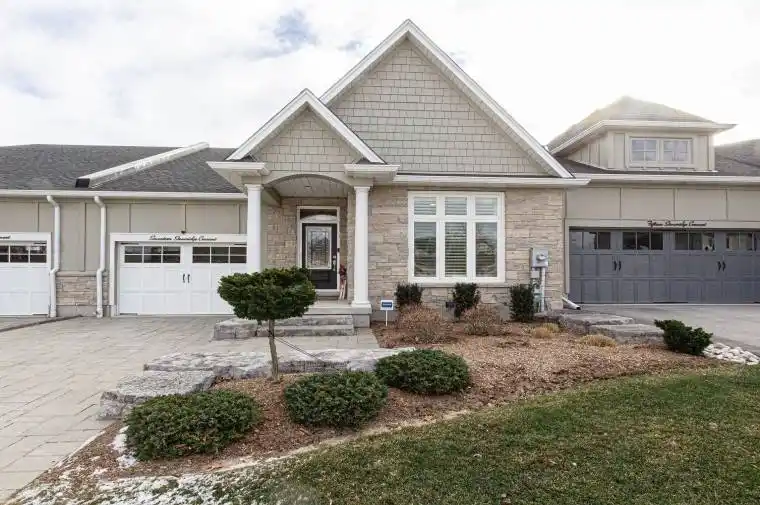 A LUXURIOUS RETREAT! Pride of ownership definitely shows as you tour this previous “model home” owned by only one owner! Upon entering this exquisite freehold townhouse, you are struck by the high ceilings which help to create an airy & spacious atmosphere! Natural light is maximized by the 2 Velux skylights and solar tube. The open-concept floorplan encourages entertaining your guests or enjoying quiet evenings in front of the gas fireplace. High-end finishes reflect quality & craftsmanship throughout! The gourmet kitchen area is equipped with lots of storage in the upgraded cabinets with glass doors. The solar tube highlights the quartz counters & custom hood fan. The functional island incl a Bristol undermount sink & new dishwasher. The multi-functional kitchen overlooks the formal dining area & great rm which leads to a private deck to enjoy the island with fountain & clusters of beautiful decorative trees! The lot extends beyond the fenced area & backs onto the ravine & conservation area. Size of the yard allows owners to plant herbs or a vegetable garden! This oasis allows a total escape from everyday hustle! The primary bdrm suite offers a large bedroom with attractive shutters, walk-in closet & ensuite featuring double sinks & a linen closet. The den or 2nd bedroom features an upgrade to Geneva black leather plank flooring! The spacious lower level with lots of lighting could easily accommodate a family member in the potential “in-law suite”. A uniquely designed contemporary unit is mounted below the TV. The 3rd large bedroom includes a walk in closet & is next to the 4pc bathroom. This stunning elegant townhouse is a lifestyle choice & offers luxury & FREEDOM! This home is ready to move into, close to resturants, shopping, hospitals, wine routes, trails, NOTL, Shaw Festival, St. Catharines, airports, and QEW. Make it your choice ——-SOON !!!!