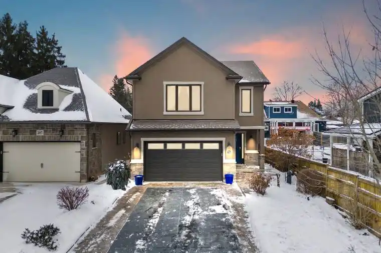 Tucked at the end of a quiet cul-de-sac, this lovely, custom built raised bungalow with a lofted bedroom level is ready for a new family to enjoy! Constructed in 2014, in one of Welland’s most desirable neighbourhoods, it offers a modern look with its stone and acrylic stucco exterior along with a premium, stamped concrete double wide driveway that leads to an extended double car garage perfect for car enthusiasts or extra storage. Step inside to a spacious foyer where a few steps will take you up to the open concept main floor where natural light highlights the scratch resistant quality laminate flooring. The spacious kitchen features granite counters, high-end appliances, a centre island and plenty of cabinetry. It overlooks the dining and living areas warmed up for cozy winter nights with its gas fireplace. The well-designed layout offers 4 spacious bedrooms and 3 full bathrooms. The upper level provides privacy with two large bedrooms, including a primary suite with a 3-piece ensuite, plus an additional 4-piece main bath. The lower level adds versatility with the two additional bedrooms, a second 4-piece bath, and a large recreation room with another gas fireplace. A functional laundry room includes a separate walk-up entrance to the garage, offering excellent in-law suite potential. For the hobbyist or tech-forward buyer, the home features a 200-amp electrical service and a 240V plug in the garage for heavy equipment or a future EV charging port. Outdoor living shines with a multi-tier deck with waterfall feature, enclosed pergola with gas lines, and a lower pergola wired for an outdoor kitchen. Storage is exceptional, with a 10×14 dry space under the deck, a 4×9 shed, and a separate BBQ shed. Close and convenient to Seaway Mall, Maple Park, and top schools, this home blends luxury, function, and location. Excellent value!