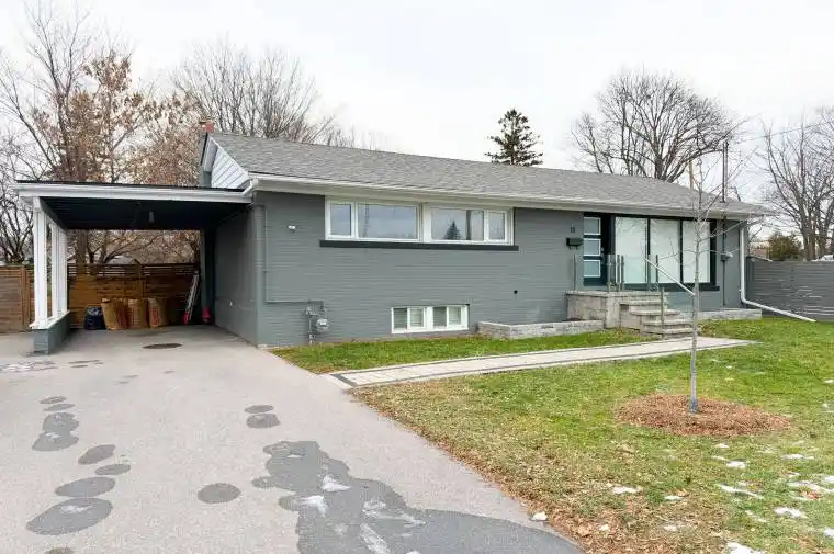 Vacant move in ready professionally managed unfurnished main floor of detached bungalow. Tandem parking included (one carport, two driveway). Layout with expansive open plan kitchen/living room that walks out to exclusive use side yard and deck, directly accessed via private front entrance. Three bedrooms with built in closets sharing 5pc bathroom. Features and finishes include: engineered wood flooring throughout and ceramic tile bathroom flooring, pot lights throughout, partial cathedral ceilings, stone countertops, tile backsplash, stainless steel appliances, kitchen laundry centre, upgraded light fixtures, island range with chimneystack extractor, optional wall mounted LG tv, window coverings, and more! || Appliances (all Samsung): slide in range, side by side bottom freezer fridge, microwave, dishwasher. || Utilities: tenant pays 2/3 of electricity, gas, waster/waste monthly as Additional Rent. || HVAC: Gas forced air heating and central air conditioning. Basement already tenanted to quiet respectful tenant long term.