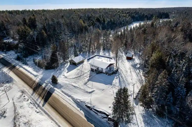 Well-maintained 3-bedroom, 1-storey home set on a high and dry 1-acre lot. This home features a spacious, welcoming kitchen, a bright solarium, and a walk-out lower level that adds versatility and natural light. A propane furnace, central air, and a cozy woodstove work together to keep the home comfortable in every season. An attached garage plus a 30′ x 22′ detached workshop/garage offer ample space for hobbies, storage, or projects. Step outside to a large deck with gazebo-an ideal setting for entertaining family and friends. Added bonuses include a Generlink hookup complete with generator, a brand-new septic system (November 2025), and low property taxes for added peace of mind. Surrounded by nature and located in an area known for its abundance of lakes, scenic trails (OFSC trail next door), and excellent fishing, outdoor recreation is right at your doorstep. Yet just down the hill you’ll find groceries, a restaurant, gas station, liquor store, school, and Home Hardware-perfectly blending village convenience with the charm of country living.