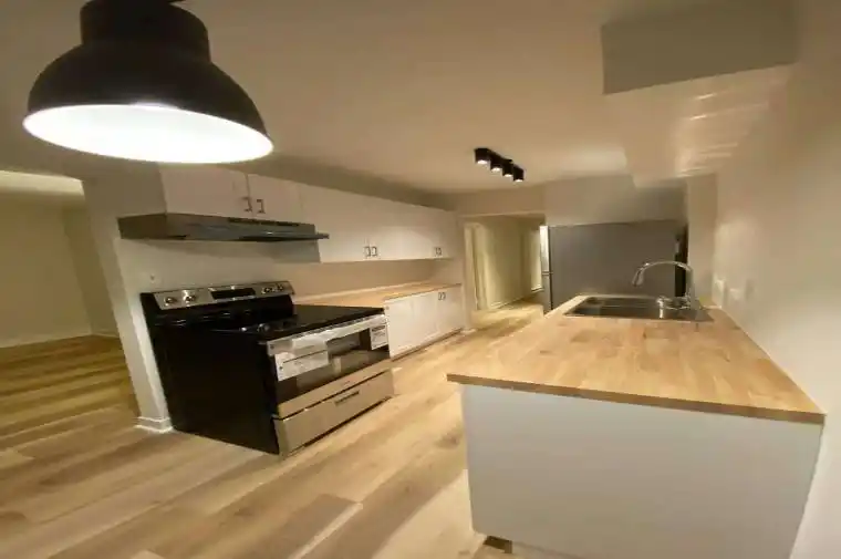 Beautifully Renovated Townhouse! This exquisitely updated townhouse features 3 spacious bedrooms, plus a fully finished basement with 2 additional bedrooms, offering exceptional space and flexibility. The home boasts brand-new laminate flooring throughout, freshly painted interiors, new modern cabinetry, and brand-new stove and refrigerator. Stylish light fixtures add a contemporary touch to every room. Enjoy a large and comfortable backyard, perfect for relaxing or entertaining. The property also features a long private driveway with no sidewalk, providing extra parking convenience. This move-in-ready townhouse offers a comfortable living environment and is ideal for families or investors alike.