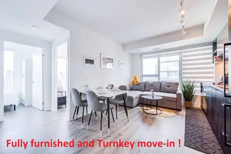 Fully furnished and Turnkey move-in ! All Brand New Furnitures Included As Shown in MLS Listings. Brand New 1 Bedroom Plus Den Corner Unit At The Heart Of Downtown Toronto Offers A Stylish Introduction To Urban Living .Stunning unobstructed city views and lake view.Functional layout : Den With A Floot To Ceiling Windows And Door Can Be Used As A Second Bedroom Or Office. Open-concept Layout With Floor-To-Ceiling Windows, High-End Quartz Countertops, Stainless Steel Appliances.Minutes Walk to St. Michael’s Choir School, George Brown College, Toronto Metropolitan University. 11-Min to University of Toronto. Steps To Yonge-Dundas Square, Eaton Centre, and Dundas Subway Station.