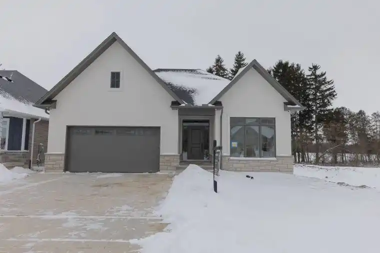 Welcome to Liberty Crossing, a desirable community nestled just minutes from the charm and convenience of Lambeth. Built by the trusted Castell Homes, this beautifully designed bungalow offers the perfect blend of style, comfort, and functionality, with quick access to the 402 and all nearby amenities. Situated on a premium lot backing on to lush green space, this home features an elegant open-concept layout, an attached 2 car garage and a finished lower level. The open concept kitchen includes a large central island, tile blacksplash and under cabinet lighting. The spacious dining area gives access to the massive covered deck, overlooking the yard and offers serene views, ideal for outdoor entertaining. The great room, anchored by a cozy fireplace with custom built-in shelving and extended tray ceiling, invites you to relax in style. A private primary retreat features a five-piece ensuite with a luxurious soaker tub, walk-in shower, and generous walk-in closet. A second bedroom, a four-piece main bath, and a convenient mudroom with laundry and garage access complete the main floor. Downstairs, the fully finished lower level is perfect for entertaining and extended family living includes a massive rec room and two additional bedrooms each with ensuite access to a shared three-piece bath. The lower level also includes a convenient stairwell to the garage. This is your opportunity to enjoy premium bungalow living in one of London’s most exciting new neighborhoods where quality craftsmanship meets everyday convenience.
