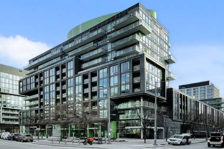 Stunning 1-bedroom + den, 2-bath suite in the heart of the Canary District. This bright, modern home features floor-to-ceiling windows, 9 ft ceilings, hardwood throughout, a walk-in closet in the primary bedroom, and a private balcony perfect for morning coffee or evening wind-downs. The open-concept kitchen is both stylish and functional, offering built-in stainless steel appliances, and custom cabinetry-ideal for cooking and entertaining. Thoughtfully designed with spacious rooms, well-appointed bathrooms, and true move-in readiness. Includes unlimited high-speed Beanfield internet for complete downtown convenience. Residents enjoy exceptional amenities: a full fitness centre, rooftop terrace, games room, party room, bike storage, and guest suites. Steps to TTC, restaurants, shops, cafes, parks, and a vibrant community atmosphere. The Canary District offers unmatched access to the Cooper Koo YMCA, Corktown Common, scenic trails, and nearby Leslieville and the Distillery District. Perfect for professionals, fitness lovers, and anyone seeking a modern, connected Toronto lifestyle. Select photos have been virtually staged to showcase the potential of the space.
