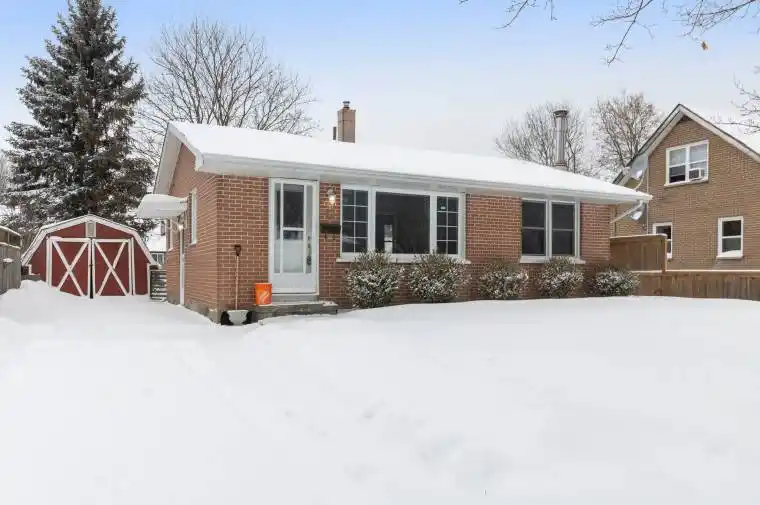 Welcome to this well-maintained 2+1 bedroom, 1 bathroom brick bungalow, ideally located on a quiet street in central Brockville. Vacant and move-in ready, this home offers a flexible layout, timeless features, and excellent value for buyers looking for comfort, space, and long-term potential. The main level features a bright living room with hardwood floors and large front windows that bring in plenty of natural light. The functional kitchen offers ample cabinetry, butcher-block style counters, and space for everyday cooking, while the adjoining layout makes it easy to personalize over time. Two main-floor bedrooms are well sized and serviced by a full bathroom. Downstairs, the finished basement significantly expands the living space, offering a large recreation room anchored by a cozy fireplace-perfect for movie nights, a home office setup, or a family room. An additional bedroom provides flexibility for guests or hobbies, along with a separate laundry area and plenty of storage. Outside, enjoy a fully fenced backyard with room to relax, garden, or entertain. A detached shed adds extra storage, and the overall lot offers privacy while still being easy to maintain. This home is ideal for first-time buyers, downsizers, or investors looking for a solid property in a desirable, established neighbourhood close to schools, parks, shopping, and amenities.