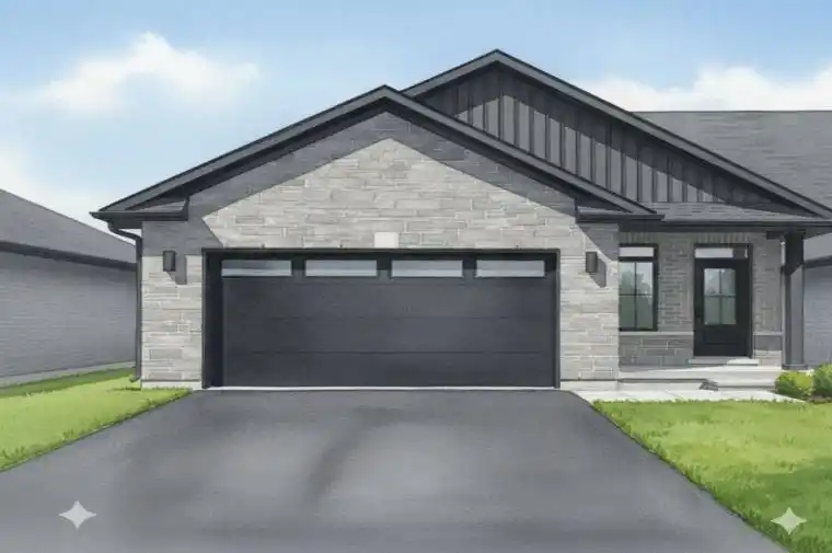 Welcome to this sought after Duvanco end unit townhome. This light filled 1+1 bedroom, model features nine-foot ceilings on the main floor with a dramatic vaulted ceiling in the great room and a powder room. Premium laminate flooring flows throughout, with porcelain tile in bathrooms and laundry. The designer kitchen shines with quartz countertops, soft-close cabinetry with crown moulding, under-cabinet lighting, and a corner walk-in pantry. The primary bedroom boasts a spacious ensuite with tiled step-in shower and glass surround along with a walk in closet. The finished basement includes a second bedroom, four-piece bathroom, recreation room, and office/flex space. The attached double-car garage comes insulated, drywalled, and primed. Outside, enjoy full brick exterior, asphalt driveway, decorative precast walkway, sodded yard, and pressure-treated deck. Bird Park, shopping and the 401 are all just minutes away. Every Duvanco home includes Holmes Approved three-stage inspections with certification.
