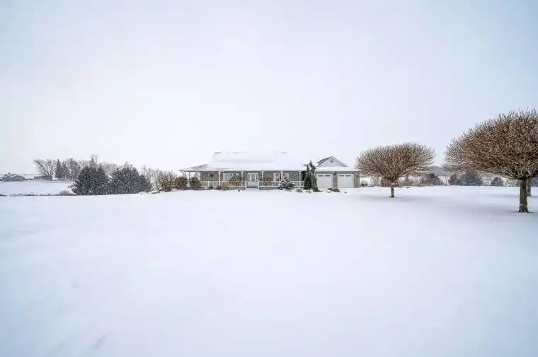 Sitting proudly on 15 acres, this one-owner brick ranch offers the ideal blend of country charm, privacy, and modern comfort. Approximately 10 workable acres surround the home, which is perfectly positioned on roughly 2 acres at the top of the property, capturing peaceful views over open farmland and river flats below.Step inside to a meticulously maintained home designed for easy main-floor living. Enter through the welcoming front foyer or directly from the double-car attached garage into the practical mudroom and laundry area. The bright, open-concept layout features hardwood flooring throughout most of the main level, a cozy gas fireplace anchoring the living room, and large windows that flood the space with natural light while framing the stunning countryside views.The kitchen is made for both cooking and conversation, complete with an island and breakfast nook that opens onto a wrap-around deck. It’s the perfect spot for morning coffee, evening wine, or keeping an eye on poolside fun below.The primary bedroom offers a peaceful retreat with double closets and a unique 4-piece ensuite featuring a relaxing soaker tub. A second bedroom and 3-piece bath complete the main level.Downstairs, the full walk-out basement is built for family living and entertaining, boasting an impressive 25′ x 35′ rec room, two additional bedrooms with double closets (one currently used as a games room), a 3-piece bath, and generous storage. The home is also equipped with a central vacuum system, making day-to-day upkeep a breeze.Step outside to enjoy the 20′ x 40′ in-ground saltwater pool, sloping grounds ideal for winter tobogganing, and endless views of the surrounding farmland and river flats.With nearly 4,000 sq ft of finished living space and exceptional outdoor amenities, this property is perfectly suited for a hobby farm, family retreat, or private country escape. Properties like this are rare. Don’t miss your opportunity to make it yours.