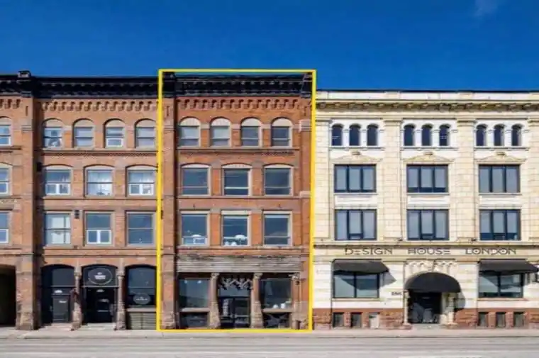 Unit B at 184 York Street offers a refined and private second-floor office environment in the heart of downtown London. Comprising over 2,000 sq. ft., this character-rich space features exposed brick, high ceilings, abundant natural light, and a flexible layout suitable for a wide range of professional and commercial users. The unit is accessed via a secured front lobby with stair and elevator access, providing a quiet setting away from street-level activity. The property is zoned DA1(6) D350 h-213 TSA5 (Downtown Area) under the City of London Zoning By-law, which permits a broad range of commercial, professional, medical, and personal service uses, subject to City approvals. Additional features include rear service elevator access, front stair access, and flexible possession and lease terms. Heat and water are included; hydro is separately metered to the tenant. Additional Public parking with approximately 145 spaces is located directly across the street, with additional monthly parking available at $115 + HST per space. An excellent opportunity for businesses seeking a high-quality downtown workspace with strong connectivity and character.