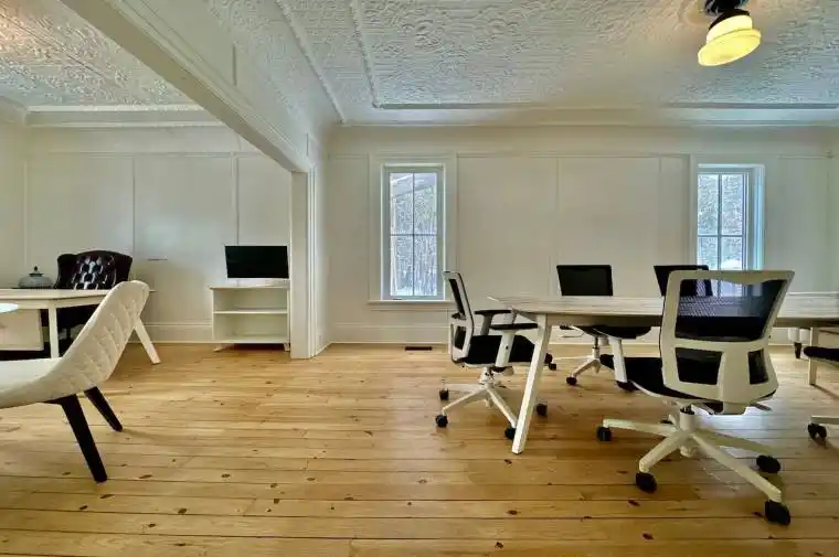Newly renovated high exposure historic landmark building with professional tenant mix situated just east of York Durham Line in the quaint hamlet of Green River immediately on Highway 7 (formerly known as the Saunders Book Store). Conveniently located just east of Markham along the north west border of Rural Pickering. Ideally suited for office or similar use. Suites/ offices range from 156 – 569SF. See floor layout plan showing main and upper floors. W1, W2, W3 (569SF) are available. W1, W2, W3, can make for a sizeable office suite with its own boardroom and kitchenette. There are three common washrooms. Each unit comes with its own designated parking(s). Utilities (gas/ water/ hydro) are included. The interior of the building impresses with period correct materials throughout. Finishes include mosaic tilework, hardwood, high baseboards, crown mouldings, ornate trimwork, coffered/ tin ceilings, oversized vertical sliding slash styled windows that crank open, exposed wood, brickwork, and more. All office are sizeable, bright, and airy with ample separation from neighbouring suites. Office furniture can form part of the lease subject to availability.