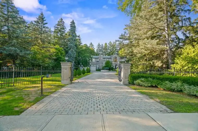 One-Of-A-Kind Neoclassical Residence On Estate-Like Grounds In Coveted Thornhill Village. Custom European-Inspired Interiors Showcasing Impressive Craftsmanship & Pride Of Ownership. Upon Entry, A Regal Rotunda With Double-Height Ceilings, Ornate Handpainted Baroque Murals, Circular Staircase, Mezzanine Overlook & Soaring Arched Windows Framing The Stunning Rear Gardens. Elegant Living Room & Formal Dining Room W/ Wood-Burning Fireplaces. Light-Filled Kitchen W/ Vaulted Glass Ceiling, Walk-Out To Terrace & Expansive Breakfast Area. Family Room Featuring Floor-to-Ceiling Windows, Walk Out To Backyard & Wood-Burning Fireplace W/ Custom Art Deco Mantel. Vast Primary Suite Features 2 Walk-In Closets & 6-Piece Ensuite W/ Jet Tub. Second & Third Bedroom W/ Walk-In Closet & 4-Piece Ensuite. Fourth & Fifth Bedroom W/ Double Closet & 4-Piece Semi-Ensuite. Lower Level Presents Entertainment Room W/ Wet Bar, Wood-Burning Fireplace, Walk-Up To Backyard, Home Cinema, Fitness Room, Nanny Suite, Cedar Sauna & 2 Full Baths. Spectacular Backyard Retreat W/ Tree-Lined Privacy, Outdoor Pool, Terraced Courtyard, Barbecue-Ready Patio & Professional Landscaping. Stately Wrought-Iron Gated Entrance, Circular Driveway & Sprawling Wooded Lawn. Superb Location In One Of Thornhills Most Exclusive Neighbourhoods. Minutes To Top-Rated Public & Private Schools, Canadas Finest Private Golf Clubs, Parks, Shops, Restaurants & Public Transit.