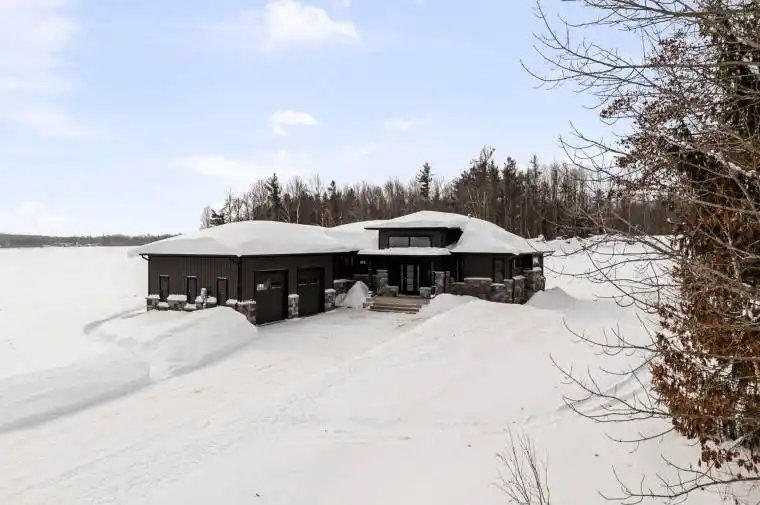 A Masterpiece of Modern Elegance in a Tranquil Country Setting. Prepare to be captivated by this custom-built bungalow a residence that redefines luxury living. Meticulously crafted with premium upgrades throughout, this home offers an exquisite blend of opulence, functionality, and serene countryside charm, all just minutes from Orillia. Step inside the expansive open concept main level, where natural light floods through oversized windows, illuminating every curated detail. The heart of the home an entertainers dream kitchen features: massive quartz-topped island, full wet bar, generous walk-in pantry and Custom cabinetry with designer lighting. Flowing seamlessly from the kitchen is the great room, a dramatic space boasting 14-ft beamed and shiplap ceilings, a striking fireplace, and custom LED ambient lighting. Step through oversized glass doors to a grand stone patio, ideal for alfresco dining and sophisticated outdoor entertaining. The primary suite is your personal sanctuary, complete with: spa inspired 5-piece ensuite featuring a freestanding soaker tub, luxurious walk-in shower, and dual vanities, fully outfitted walk-in closet with custom storage solutions. Two additional generously sized bedrooms share a designer 5-piece bath, while the main floor is completed by a stylish mudroom, laundry room, and wide plank engineered hardwood flooring throughout. Descend to the fully finished ICF basement, where possibilities abound. This level offers: An additional bedroom and full bathroom, A state of the art synthetic ice hockey rink (a truly rare and extraordinary feature in a private residence), Expansive space for a home theatre, gym, or recreation lounge. The oversized, heated 3-car garage is equally impressive, fully insulated with epoxy coated floors. Set on a peaceful lot backing onto open farmland, the property offers direct access to the OFSC snowmobile trail, and is ideally situated just a short drive to local beaches, shopping, dining, and more.
